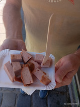 For a snack, we wandered to Viktualienmarkt for a classic Leberkäse before heading to Der Schorr (Hacker-Pschorr). Their Helles was phenomenal — maybe not quite Augustiner or Hofbräu, but close. Crisp, bready, perfectly dialed in. We sat outside under the umbrellas and it's quite a nice atmosphere sitting near the giant Maypole near the market.