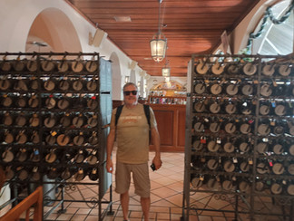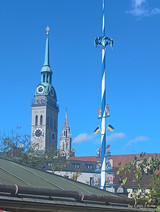 We toured Frauenkirche (church) and Asamkirche (church) then climbed the ancient tower of Peterskirche (church) for sweeping views of Munich’s rooftops. We saw the image on the ceiling of St. Peter crucified upside-down. Next we stopped by the Official Oktoberfest Store for souvenirs. At this point we were getting thirsty. We headed to Paulaner Zum Spöckmeier and sampled their Dunkel (good, not great) and their Helles (ranking 4th behind Augustiner, Hofbräu, and Hacker-Pschorr).